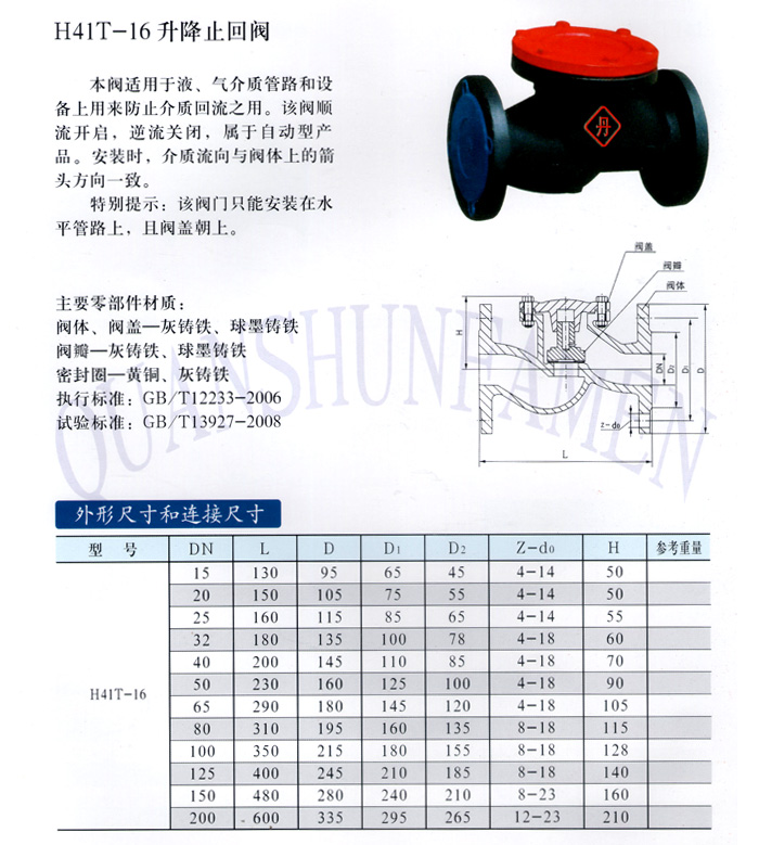 H41T-16 升降止回閥